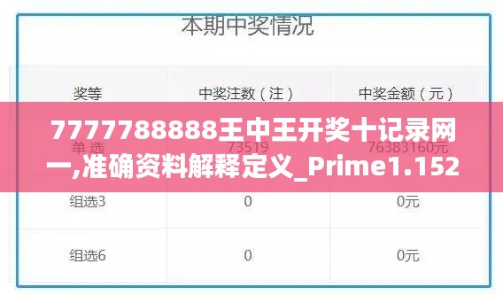 First and foremost, let's break down what "7777788888王中王开奖十记录网一, 准确资料解释定义_Prime1.152" means. The number sequence "7777788888" is likely a unique code or identifier for a specific lottery event or draw. The term "王中王" could be a nickname or a special term for a high-stakes or VIP lottery draw. "开奖十记录" refers to the recording of ten instances or occurrences of the lottery event, and "网一" might indicate that these records are of the most recent or the first set of releases. "准确资料解释定义_Prime1.152" suggests that these records come with precise definitions and clear explanations, with "Prime1.152" possibly being a version number or a specific protocol identifier for the release of this information.