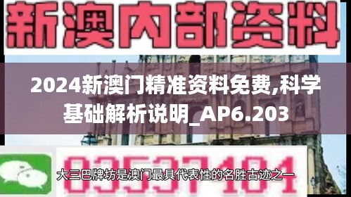 2024新澳门精准资料免费,科学基础解析说明(简称:AP6.203)是澳门特别行政区政府为促进市民对澳门政策的理解和关注提供的一项重要公共服务。本文档旨在以清晰明了的语言,对AP6.203的内容进行详细解读,增加公众对澳门特区政府政策文件的认识和兴趣。