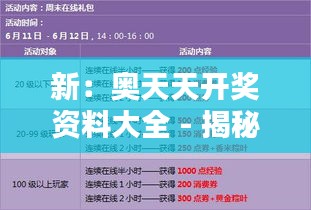 新:奥天天开奖资料大全 - 彩票的魅力与数据解密