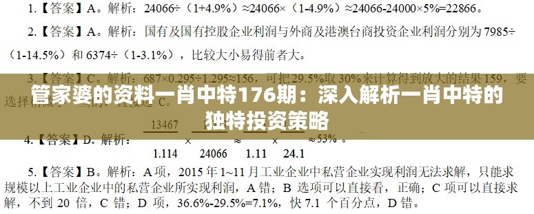 管家婆的资料一肖中特176期:深入解析一肖中特的独特投资策略
