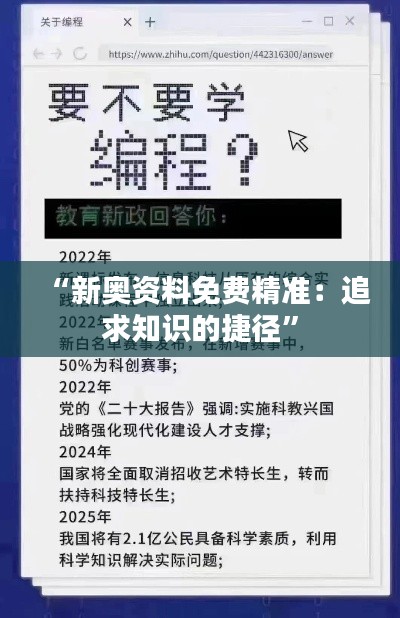 在这个信息爆炸的时代,获取知识变得前所未有地便捷,但同时也面临着信息过载和质量参差不齐的挑战。在这样的背景下,“新奥资料免费精准:追求知识的捷径”项目应运而生,旨在为广大用户提供一个高效率、高质量的信息获取平台。