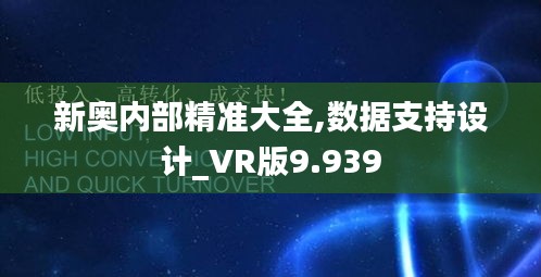 随着科技发展,信息时代的到来,“新奥内部精准大全,数据支持设计_VR版9.939”这一概念逐渐受到人们的高度关注。特别是在澳门特区这片充满活力与发展的热土上,这一先进理念更是显得至关重要。本文将对“新奥内部精准大全,数据支持设计_VR版9.939”这一主题进行详细的阐述,以期为澳门特区的未来发展提供一定的参考与借鉴。