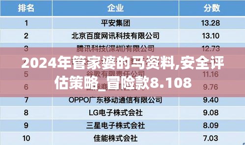 在这个信息爆炸、风险频发的时代,数据安全和信息防护成为我们必须要面对的重要议题。特别对于那些身负重任的人员来说,如何确保数据的安全性、完整性和可靠性至关重要。本文以2024年管家婆的马资料为中心,探讨了在这一领域内值得关注的安全评估策略——冒险款8.108。这篇文章的目的是为了提供给澳门的决策者和管理层面对数据安全挑战的一个整体视角,并结合冒险款8.108这一工具进行深入的分析和挖掘,确保澳门的政策文件能够更加准确、有效地对数据安全进行评估。