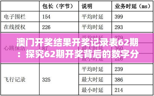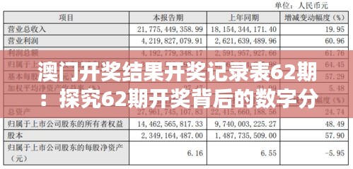澳门开奖结果开奖记录表62期记录了最近一期的澳门彩票开奖结果。这些数据不仅对彩票参与者具有参考价值,对研究概率论和统计学也提供了实际数据的支持。本文将通过对62期开奖结果的详细分析,探讨数字分布特征和概率的概率性规律,增加读者对澳门彩票开奖结果的了解和兴趣。