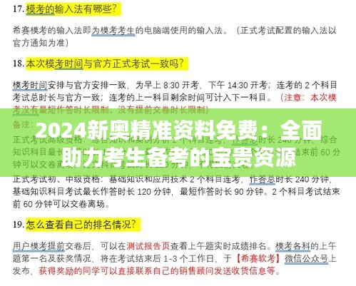 为了充分利用2024新奥精准资料免费,提高备考效果,我们建议考生遵循以下指南: