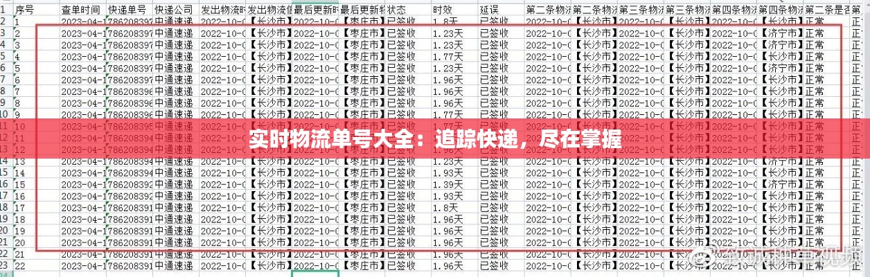 实时物流单号大全为我们的生活带来了极大的便利。在电子商务日益繁荣的今天,掌握物流信息变得尤为重要。通过实时物流单号大全,我们可以轻松追踪快递,掌握物流动态,享受更加便捷的快递服务。希望本文能为您提供帮助,让您在物流信息查询方面更加得心应手。