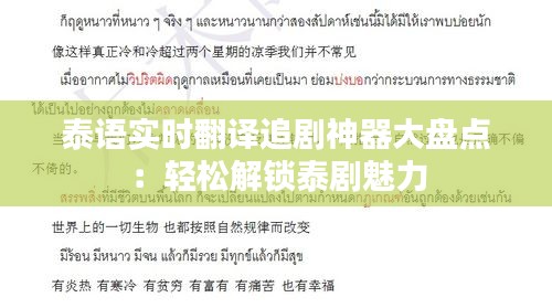 标题:泰语实时翻译追剧神器大盘点:轻松解锁泰剧魅力