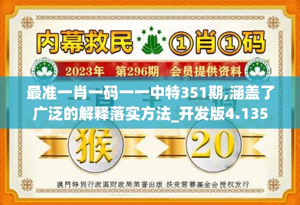 在澳门特别行政区,博彩业一直是经济的重要组成部分,为了确保博彩市场的公平性和稳定性,特区政府持续出台并更新一系列政策文件,以规范和指导博彩活动。其中,最新一期的政策文件《最准一肖一码一一中特351期》,特别是开发版4.135,汇集了多个维度的解释和落实方法,旨在提供一个全面的响应机制,以适应快速发展的博彩市场和不断变化的监管需求。