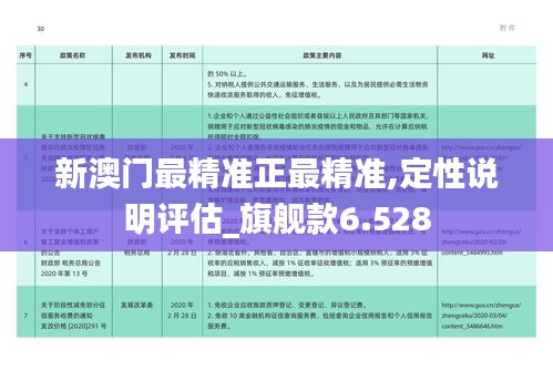 在全球化的今天,各地区都在寻求最精准的政策来促进经济和社会的发展。澳门作为一个国际化的城市,也在不断地探索与完善自身的政策体系。面对新的挑战与机遇,澳门政府推出了全新的政策文件,将“新澳门最精准正最精准,定性说明评估_旗舰款6.528”作为核心理念,旨在引导澳门迈向更加繁荣稳定的未来。