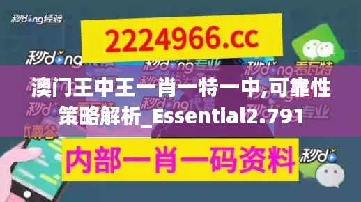 在澳门发展的过程中,制定并实施具有高度可靠性的政策策略至关重要。尤其是对于"澳门王中王一肖一特一"策略的理解与分析,这直接关系到澳门经济及社会政策的成功实施。"Essential2.791"表示的是一种高标准的执行要求,强调了对政策实行过程精准与效率的追求。本文将对“澳门王中王一肖一特一中,可靠性策略解析——Essential2.791”进行深入探讨,以期为澳门政策决策提供参考依据。