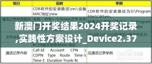 实践性方案设计是指在特定情况下对解决方案的系统化规划和执行,确保方案能够有效应对实际挑战。针对“新澳门开奖结果2024开奖记录”的流程管理,实践性方案设计_Device2.370扮演着关键角色。