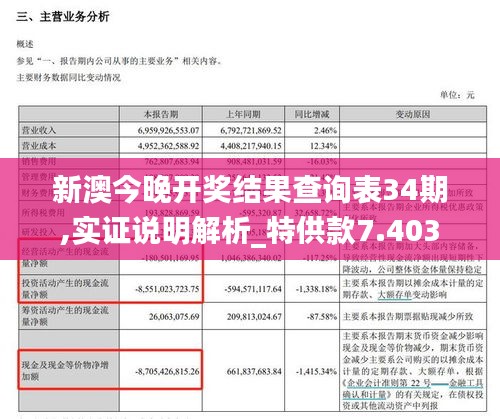新澳今晚开奖结果查询表34期,实证说明解析_特供款7.403,旨在为澳门的彩票政策以及彩票行业的发展提供详尽的分析,并在实证基础上对彩票行业进行说明和解读。本文将从澳门彩票行业概述、新澳今晚开奖结果查询表34期特供款7.403的解析、彩票行业未来发展等方面进行详细阐述。希望本文能够为澳门的政策制定者、彩票行业从业者以及其他相关人士提供有价值的参考和启示。