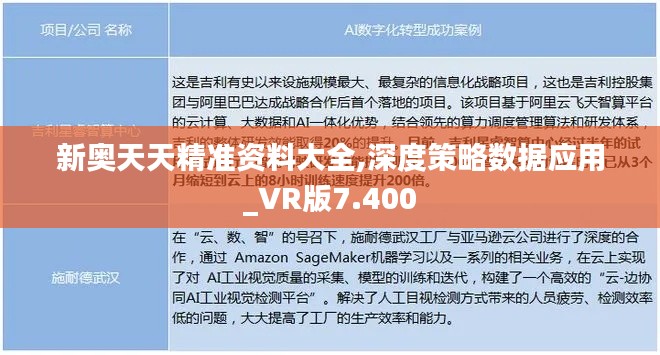 “新奥天天精准资料大全,深度策略数据应用_VR版7.400”的核心价值在于其所体现的深度数据应用能力。通过VR技术,政策制定者能够以更直观的方式理解和分析数据,辅助制定更为精准和合理的政策,这对于政策的有效实施和监督至关重要。