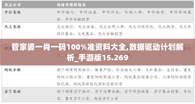《管家婆一肖一码100%准资料大全,数据驱动计划解析_手游版15.269》不仅是澳门政府推动数字化转型的重要文件,也是澳门社会经济发展的新动力。我们相信,通过这一政策文件的指导和实施,澳门将在数据管理、政策执行和创新发展等方面取得长足进步,为澳门的未来发展奠定坚实的基础。