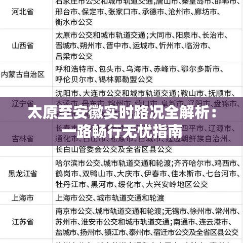 标题:太原至安徽实时路况全解析:一路畅行无忧指南