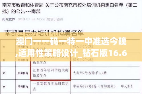 综上所述,"澳门一一码一特一中准选今晚,适用性策略设计_钻石版16.631"政策文件的发布,不仅是澳门政策制定的重要里程碑,也是澳门未来发展的新起点。这一文件的实施,将有助于澳门在全球化的大潮中找准定位,发挥优势,实现可持续的繁荣与发展。澳门特别行政区政府将持续努力,确保这一政策的顺利实施,为澳门的未来描绘出更加美好的蓝图。