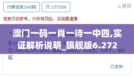 《澳门一码一肖一待一中四,实证解析说明——旗舰版6.272》是一份官方文件,它定义了澳门政府对于社会治理和服务的现代化、高效化和透明化的最新指南。一码指的是身份认证的数字化,比如社会保障号、健康码等,一肖则是指借助数字化手段简化行政流程,一待指的是等待期的缩短和优化,一中则是实现政务服务的一站式办理,四代表四个方面的整合:信息、服务、管理、监督。