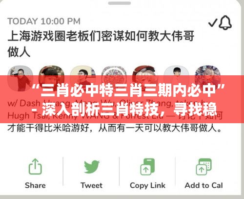 "三肖必中"这个概念是指精通三肖玩法的人能够通过某些特技确保在预定的期限内获得投注的盈利。本文所探讨的"三肖必中特三肖三期内必中",意味着在三次投注周期内,运用特定的技巧和策略实现盈利。这需要投注者深入理解三肖的规则和规律,结合历史数据和投注趋势,从而找到一种稳定且有效的投注方法。