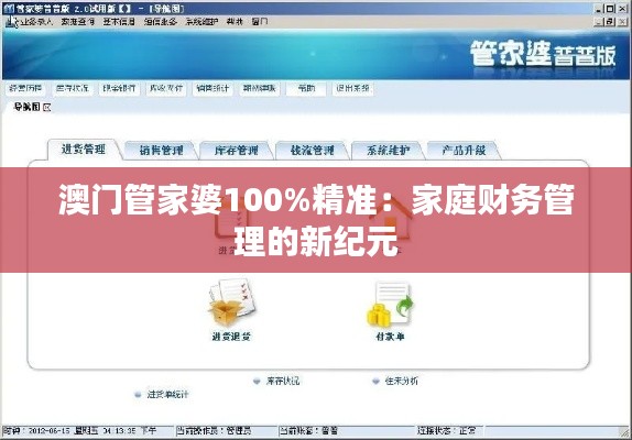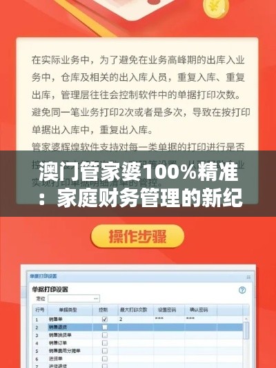 随着现代社会节奏的加快,家庭财务管理变得尤为重要,越来越多的家庭意识到了财务规划在家庭生活中的核心地位。澳门,作为中国特别行政区,一直致力于在金融服务领域的发展和创新。在这一背景下,“澳门管家婆100%精准:家庭财务管理的新纪元”作为一款全新推出的财务管理工具,无疑开启了家庭财务管理的新纪元。