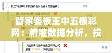 在这个信息爆炸的时代,投资决策变得日益复杂。投资者们迫切需要一种高效、精准的工具来指导他们的决策。"管家婆板王中五板彩网:精准数据分析,投资决策的灵魂伴侣"在这样的背景下应运而生。我们致力于打造一个专业、前沿的数据分析平台,助力用户做出明智的投资决策。