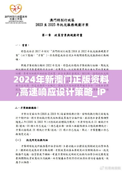 在日益数字化的全球市场中,澳门特别行政区为了保持竞争力和满足日益增长的需求,正在不断引入新的技术和服务政策。2024年,澳门正式推出了一系列新的政策文件,名为"2024年新澳门正版资料,高速响应设计策略_iPhone5.634",其重心在于创造一个更加便捷、高效和安全的服务环境。本文旨在探讨这一政策文件,以及其对于当前和未来澳门发展的重要性。