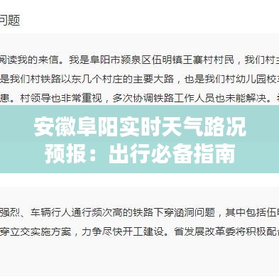 标题:安徽阜阳实时天气路况预报:出行必备指南