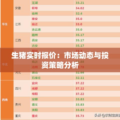 生猪作为我国重要的农产品之一,其价格波动不仅影响着养殖户的经济利益,也关系到整个产业链的稳定。随着信息化技术的不断发展,生猪实时报价系统应运而生,为市场参与者提供了及时、准确的价格信息。本文将探讨生猪实时报价的市场动态及其对投资者的影响,并提出相应的投资策略。
