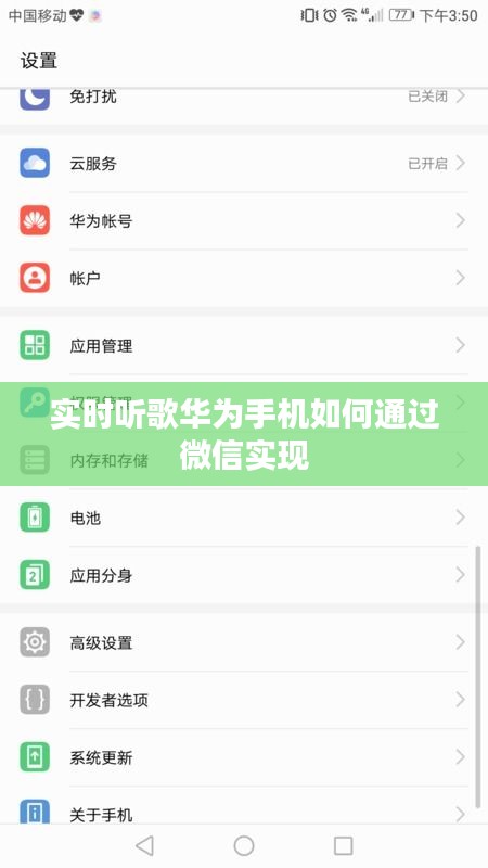 随着科技的不断发展,智能手机的功能越来越丰富,其中实时听歌功能已经成为许多用户日常生活中的重要组成部分。华为作为国内领先的智能手机品牌,其手机在音乐播放方面也有着出色的表现。本文将详细介绍如何在华为手机上通过微信实现实时听歌的功能,让您的音乐体验更加便捷和丰富。