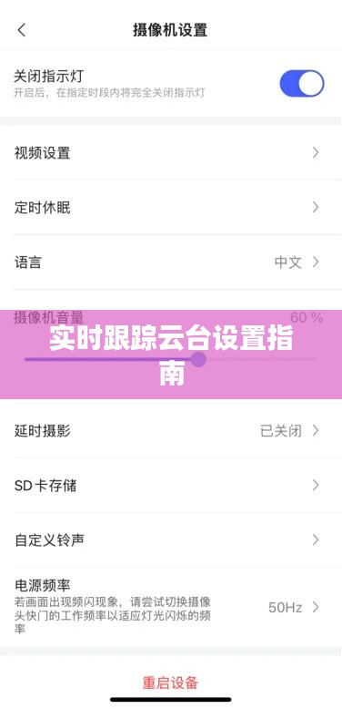 - 进入设置菜单:在云台的屏幕上找到设置菜单,进入后选择“跟踪设置”。