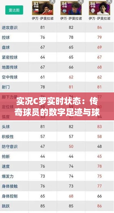 随着年龄的增长,C罗的防守和耐力有所下降。在实况足球中,他的防守数值约为75,耐力数值约为80,这要求玩家在游戏中更加注重战术安排,避免让C罗过多的参与防守。
