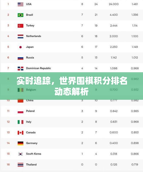 围棋,作为一项古老的智力竞技运动,一直以来都深受全球围棋爱好者的喜爱。随着互联网技术的发展,围棋比赛的实时信息传播变得更加迅速和便捷。本文将为您解析世界围棋积分排名的实时更新情况,带您了解这一领域的最新动态。
