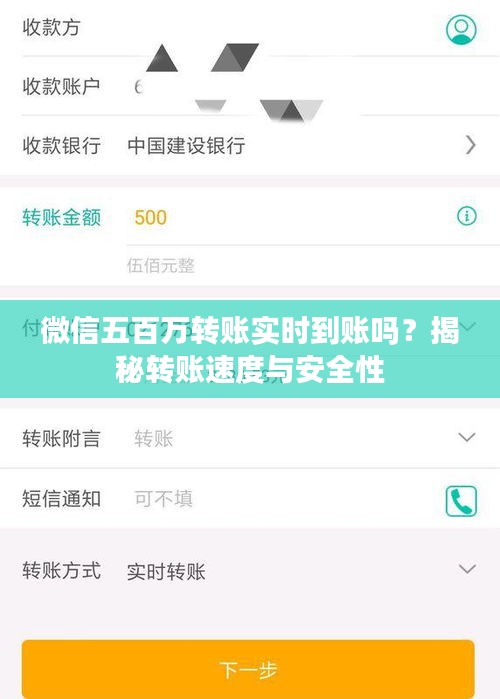 标题:微信五百万转账实时到账吗?揭秘转账速度与安全性