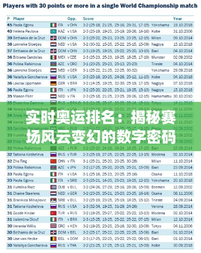 标题:实时奥运排名:揭秘赛场风云变幻的数字密码