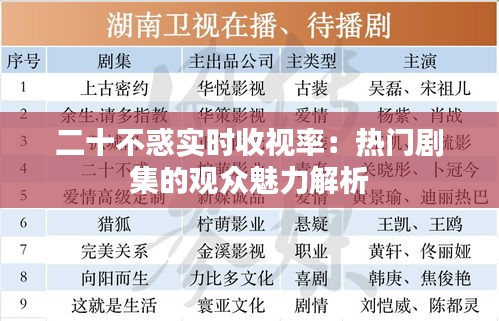 标题:二十不惑实时收视率:热门剧集的观众魅力解析